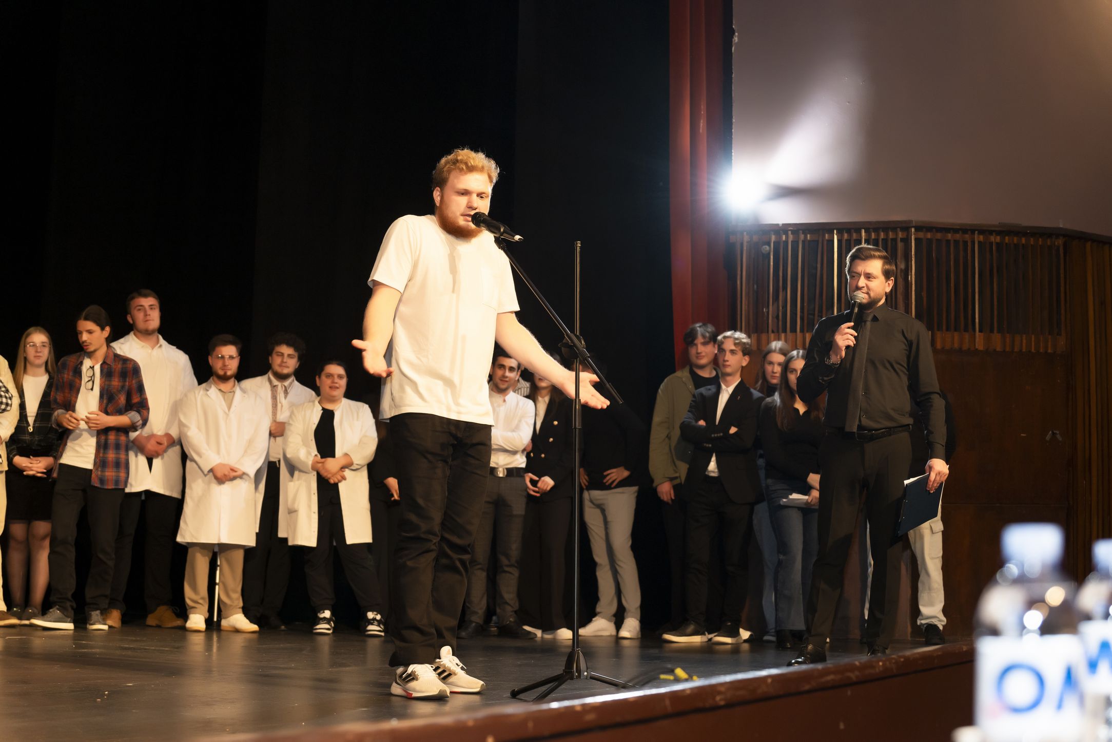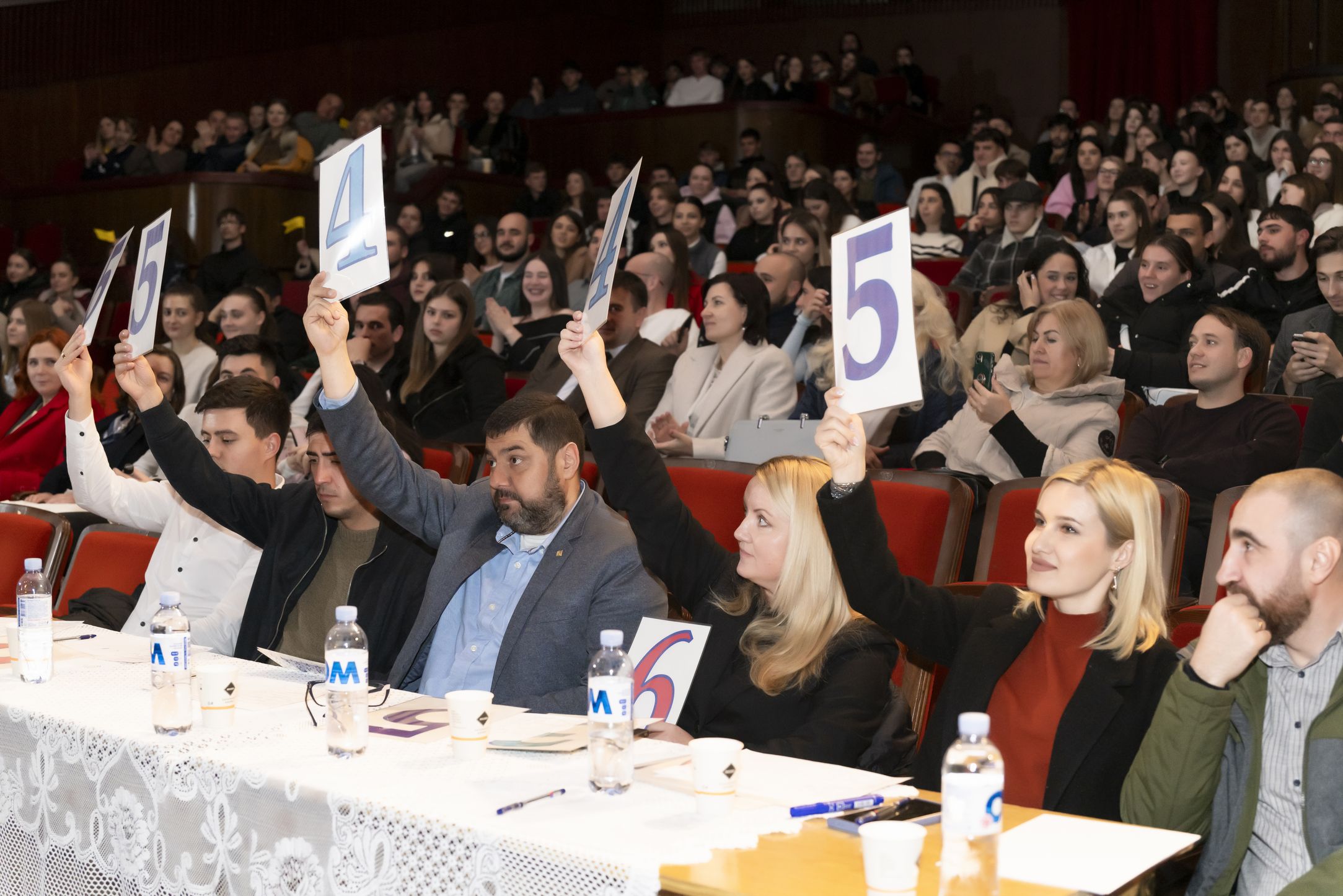 The jury, made up of three members from UTM’s administration—Radu Melnic, director of UTM College, Natalia Șestenco, deputy head of the Career Counseling and Guidance Center, and Nina Chetroi, head of the Public Relations and Image Promotion Service—and two special guests—Dumitru Roman, actor at Comedy Zebra Show, and Pavel Chișaru, president of ASMR at USMF—had the difficult task of selecting the best among the best.
